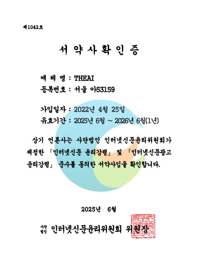 THE AI는 인터넷신문윤리위원회의 서약사로, 인터넷신문윤리강령을 준수합니다.