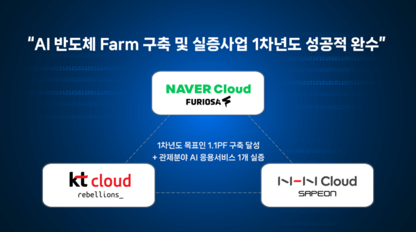 네이버클라우드(대표 김유원)는 과학기술정보통신부와 정부통신산업진흥원(NIPA)이 주관하는 ‘AI 반도체 팜(Farm) 구축 및 실증’ 1차년도 사업 목표를 달성했다고 6일 밝혔다.