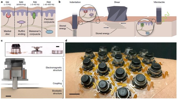 사람의 피부에는 다양한 기계적 수용체(mechanoreceptors)가 있어 촉각과 압력, 온도 등 감각을 감지한다. 그동안 의료기기와 웨어러블 기기 등 여러 분야에서 이를 활용하려는 연구가 활발히 진행되었지만 피부 유연성과 개인차(피부 두께, 탄력성 등)를 고려한 시스템 개발은 여전히 큰 도전 과제로 남아 있었다. 햅틱은 접촉 감각 같은 촉각적 상호작용을 통해 사용자가 물리적 감각을 경험하게 하는 기술을 말한다.